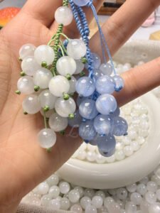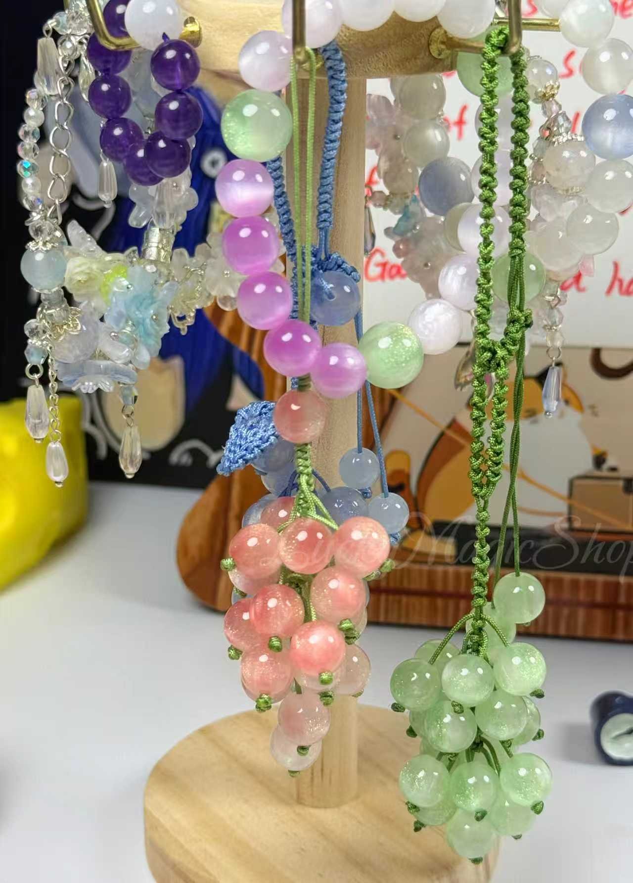 Five Scoops Free Gifts:A handmade grape charm+30 pieces f 12mm spacer beads + 5 piece of kitten – paw – shaped spacer bead + 3Roll of crystal elastic cord