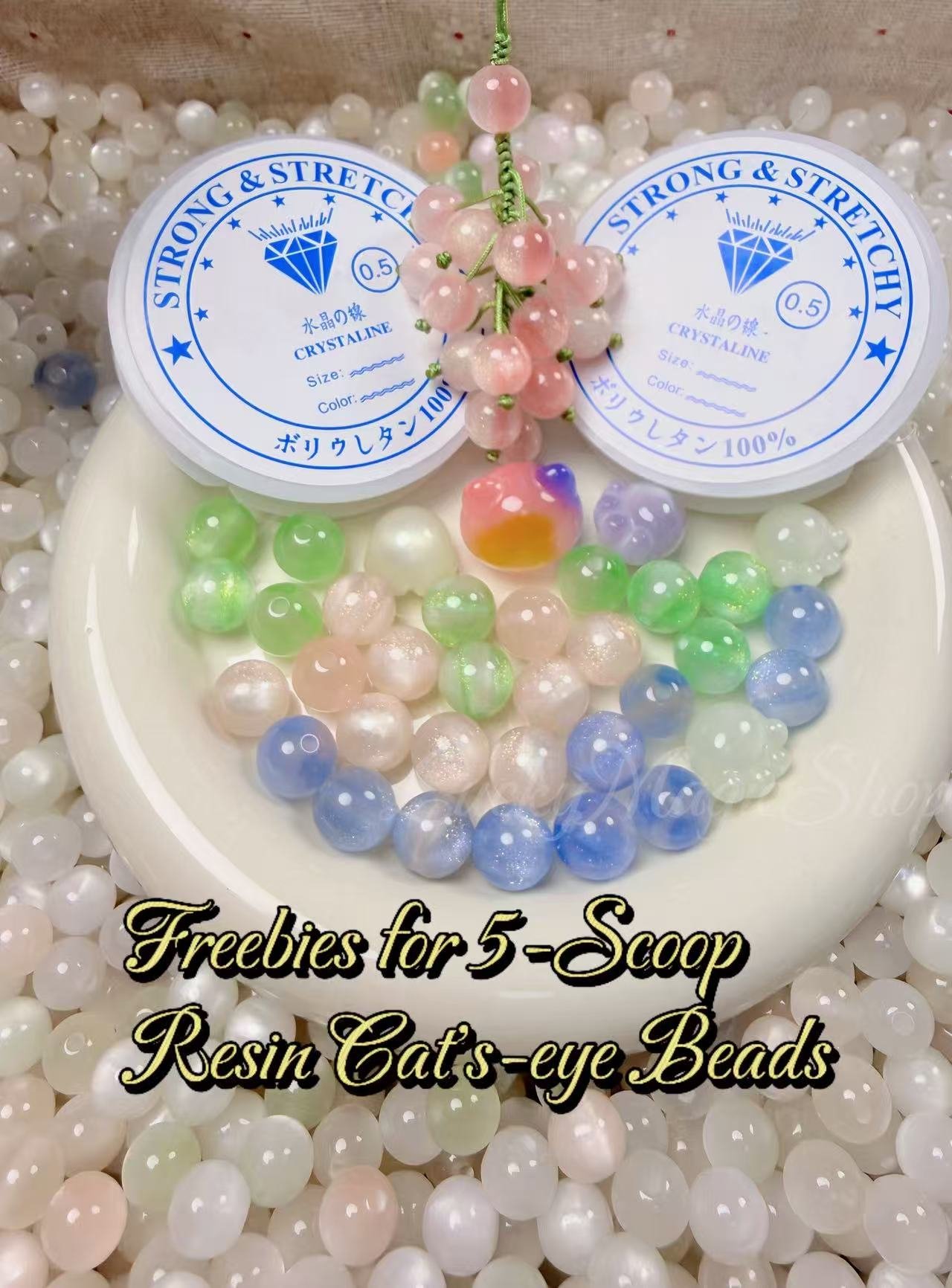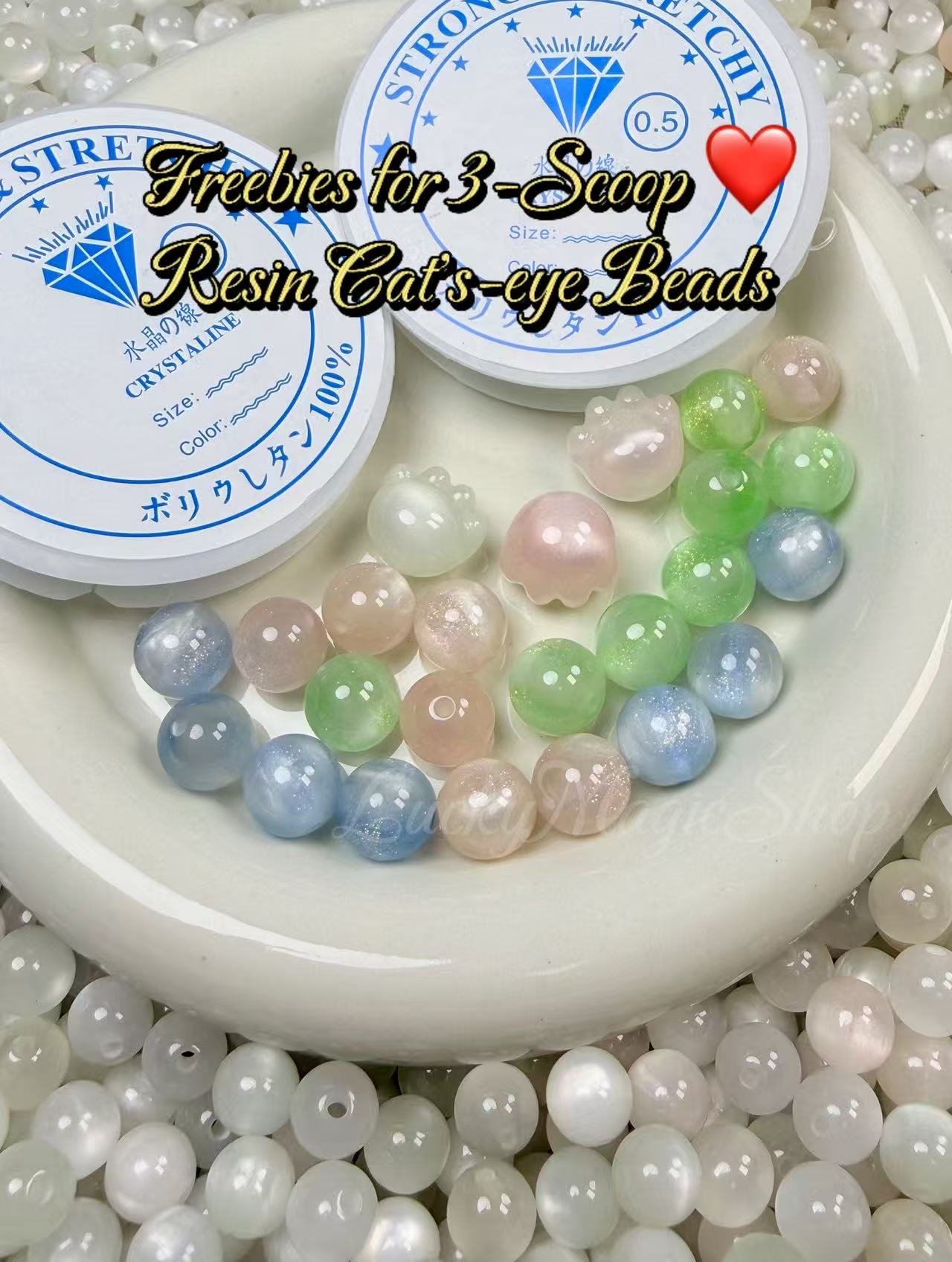 Three Scoops Free Gifts:15 pieces of 12mm spacer beads + 3 piece of kitten-paw-shaped spacer bead + 2Roll of crystal elastic cord